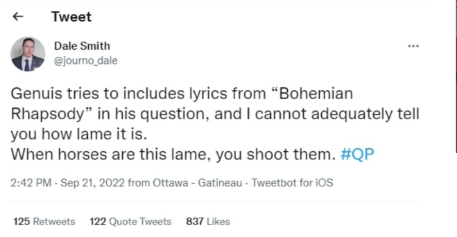 This week the focus was freelance journalist Dale Smith who poked Conservative MP Garnett Genuis’ for his conduct in Question Period: