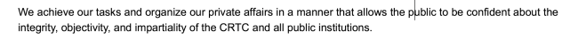 In reviewing the legal filings on the Tek Savvy appeal to Federal Court I noticed a reference to the CRTC’s internal Code of Conduct which, the Bell factum correctly points out, contemplates Commissioners engaging with stakeholders at social events.