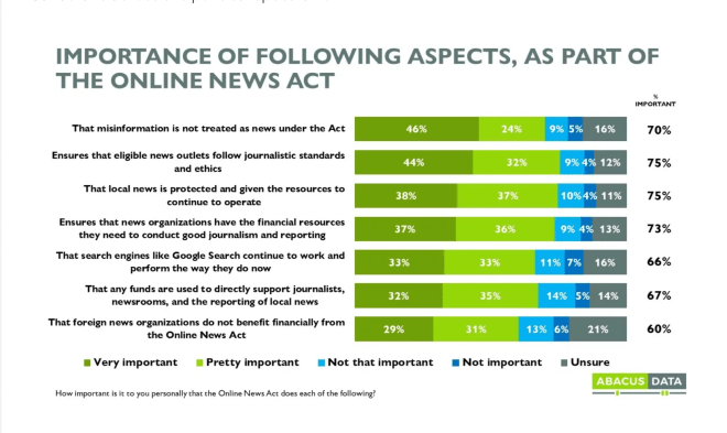 Having said that, it was inflammatory and argumentative for Abacus to tell survey respondents that the C-18 contains “an extremely broad definition for ‘eligible news businesses’ and doesn’t require eligible news organizations to follow basic journalistic standards.”