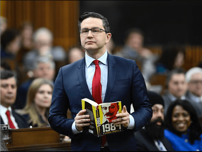 In the House, Conservative leader Pierre Poilievre flashed a copy of George Orwell’s classic dystopian novel 1984 as a cheeky (and unparliamentary) prop to make his point. He falsely claimed (in French) that the Bill censors what Canadians can say or hear online and that the censorship would be administered by ‘woke people in Ottawa.’