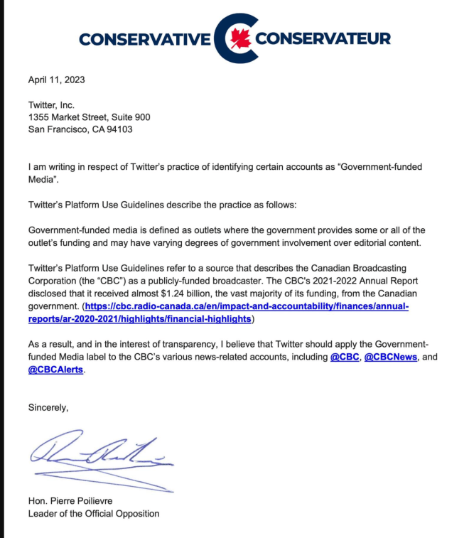 Our Leader of the Official Opposition asked Musk to slap the same ‘government funded’ warning on the currently unlabelled CBC because, in his words, “government funded media is defined as outlets where the government provides some or all of the outlet’s funding and may have varying degrees of government involvement over editorial content.”