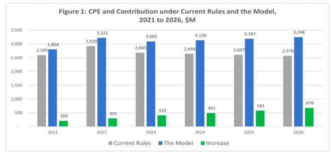 The Canadian broadcasters, as this space has observed previously, want to lower their regulatory obligations to sponsor media funds and make Canadian shows while raising matching obligations on the US streamers from zero to parity with Canadian competitors. They fix this ‘meet you in the middle’ figure at 20 % of annual revenues and provide a handy bar graph demonstrating that the entire CanCon system will be flush with cash from both foreign and domestic broadcasters.