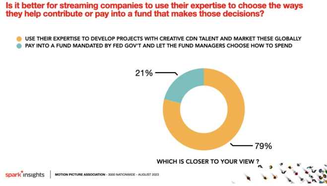 Unfortunately the second Anderson question was misleading, asking respondents if it was better for the Commission to require streamers to make cash contributions to Canadian media funds or broadcast licensed Canadian programs on their platforms.