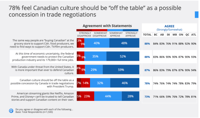 This is an incredible level of support, but hardly surprising. In the face of US threats, it is clear that Canadians recognize the importance of cultural sovereignty, including sovereignty over foreign online undertakings.