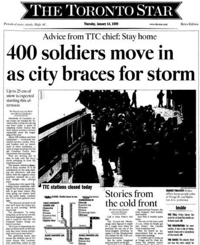 Hola from the centre of the universe, Toronto, where the biggest snowfall since 1999 (50 cm) has everyone on the watch for the army to be deployed, shovels in hand.