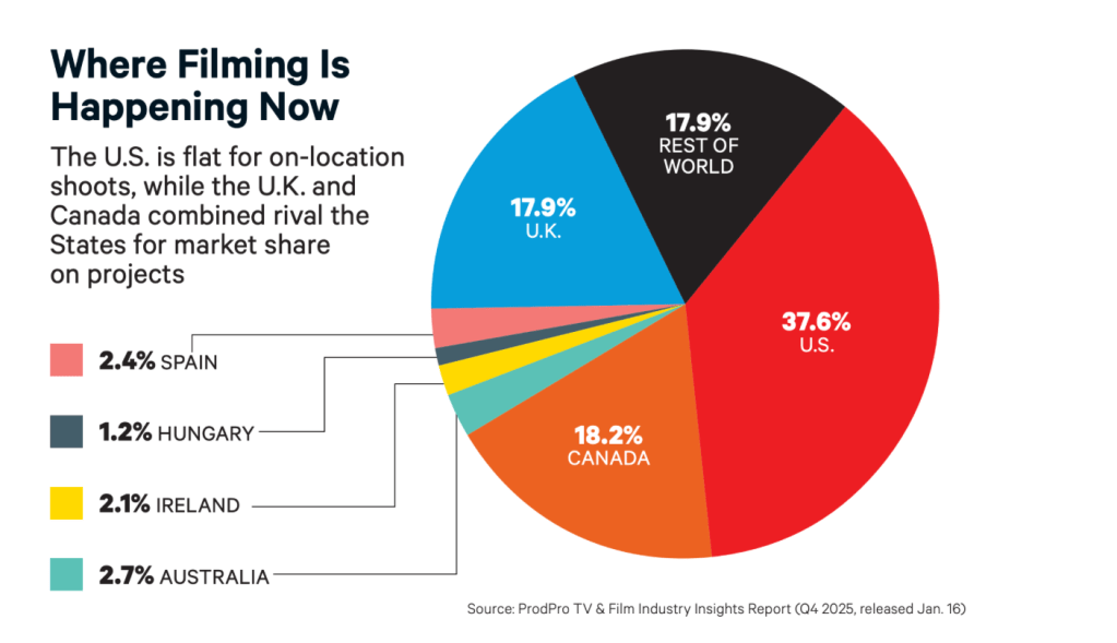 The story in the Hollywood Reporter notes that David Ellison’s Paramount, the winner of the Warner Brothers merger sweepstakes, has committed to producing at least 30 movies annually to fend off anti-trust objections. That opens up a scenario in which the Trump FCC ties the location of shooting to the merger approval, a move that would impact the UK more than Canada.
