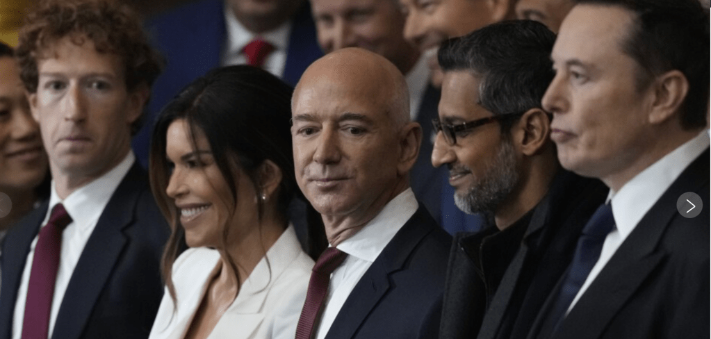 Associated Press photo of Tech CEOs Zuckerberg, Bezos, Pichai and Musk.