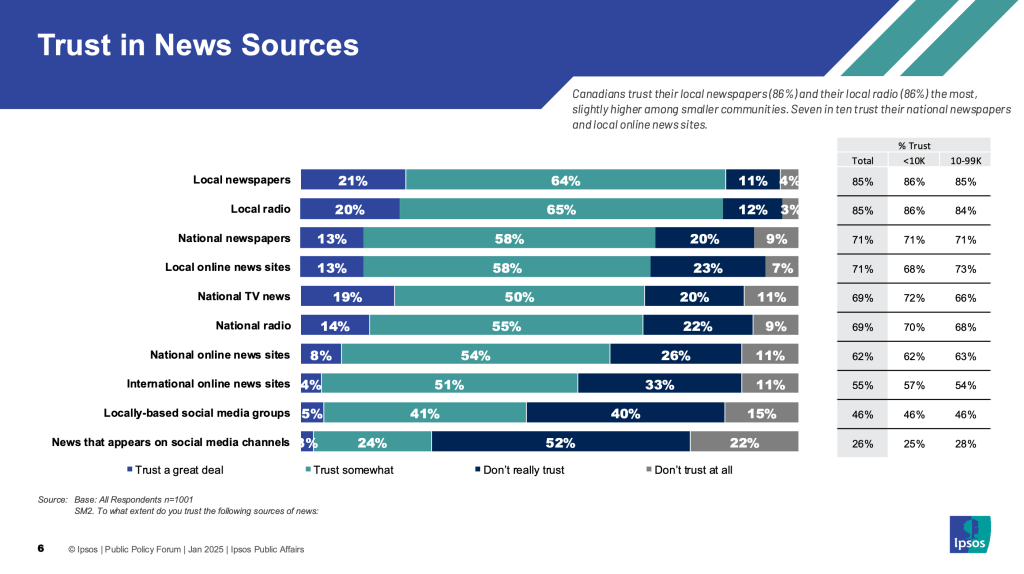 According to its press release, “almost two thirds (63 per cent) of Canadians trust advertising in newspapers/news sites, while just 28 per cent trust ads they see on Facebook/Instagram.”